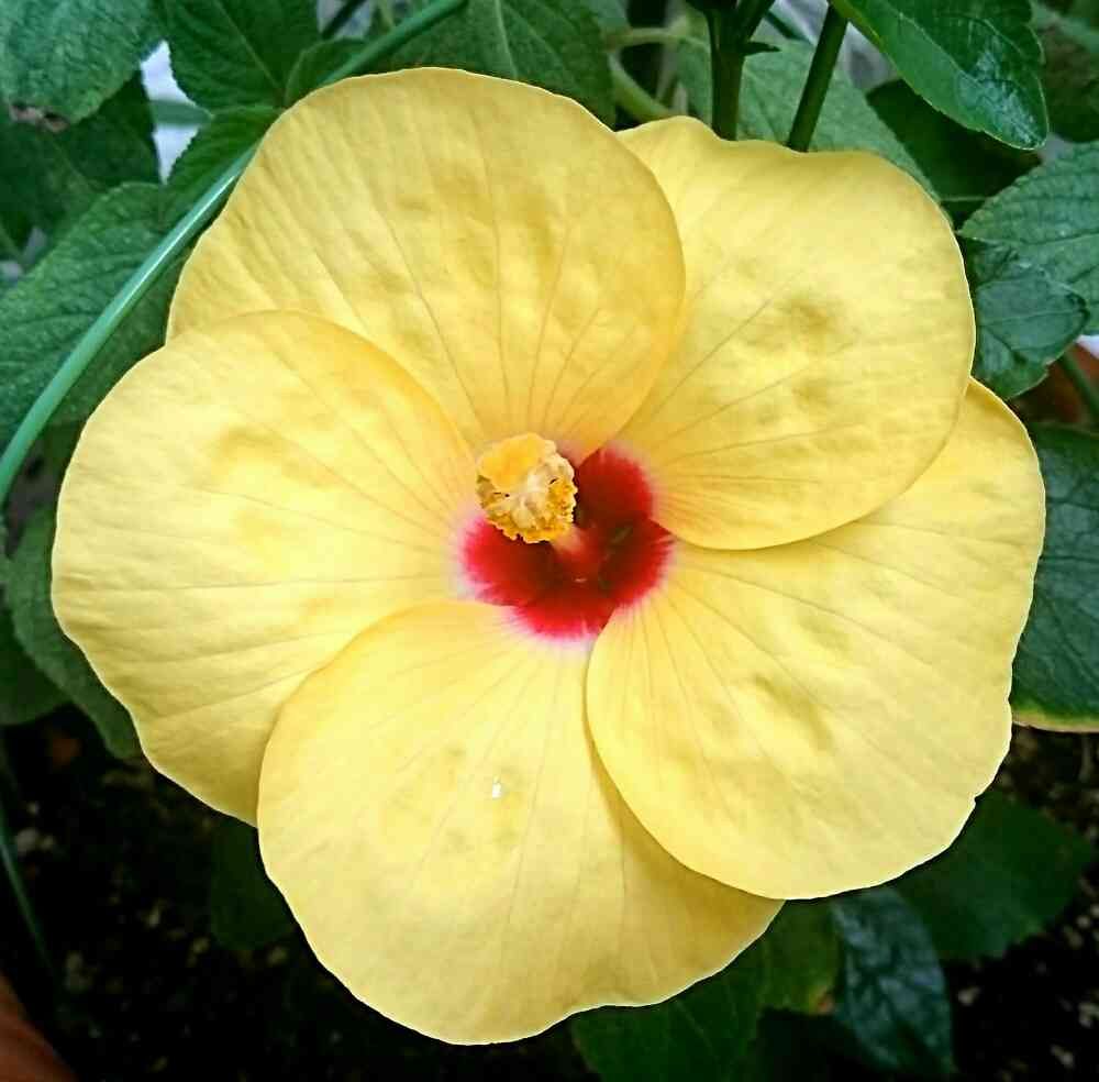 大きい鉢に植え替えた黄色のハイビスカス🌺