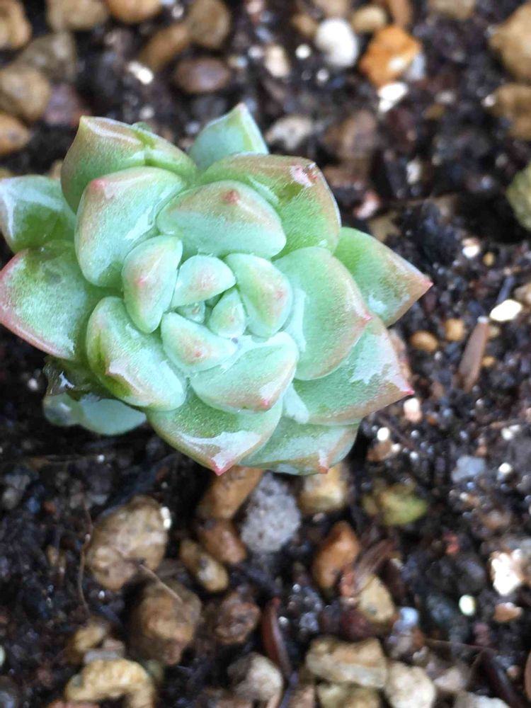 花壇組の白雪ミセバヤさん、先日エアコン工事の時に踏まれてバラバラになってて、そのまま挿してたら、プリっとなって先っぽがほんのりピンクになってる、可愛い❤️