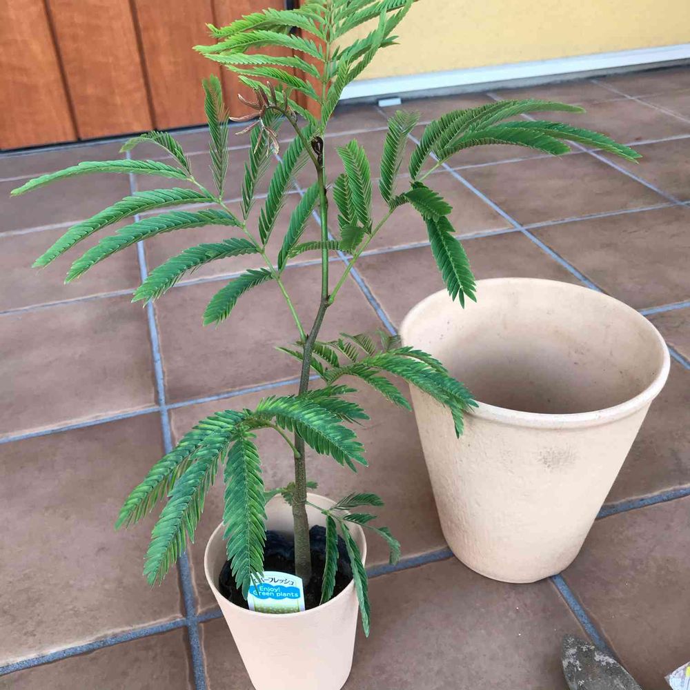 お花屋さんでとてもお買い得なエバーフレッシュがあったので、ゲットしました。鉢を植え替えます。