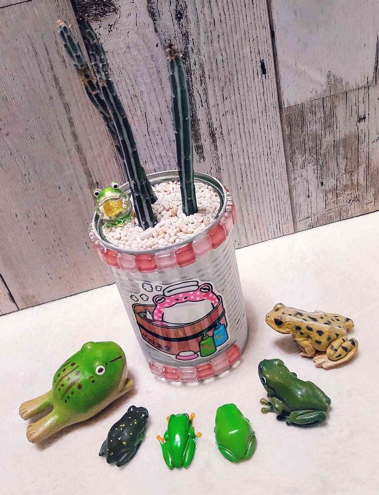ケロ温泉𐤔?のリメ缶可愛いなぁ