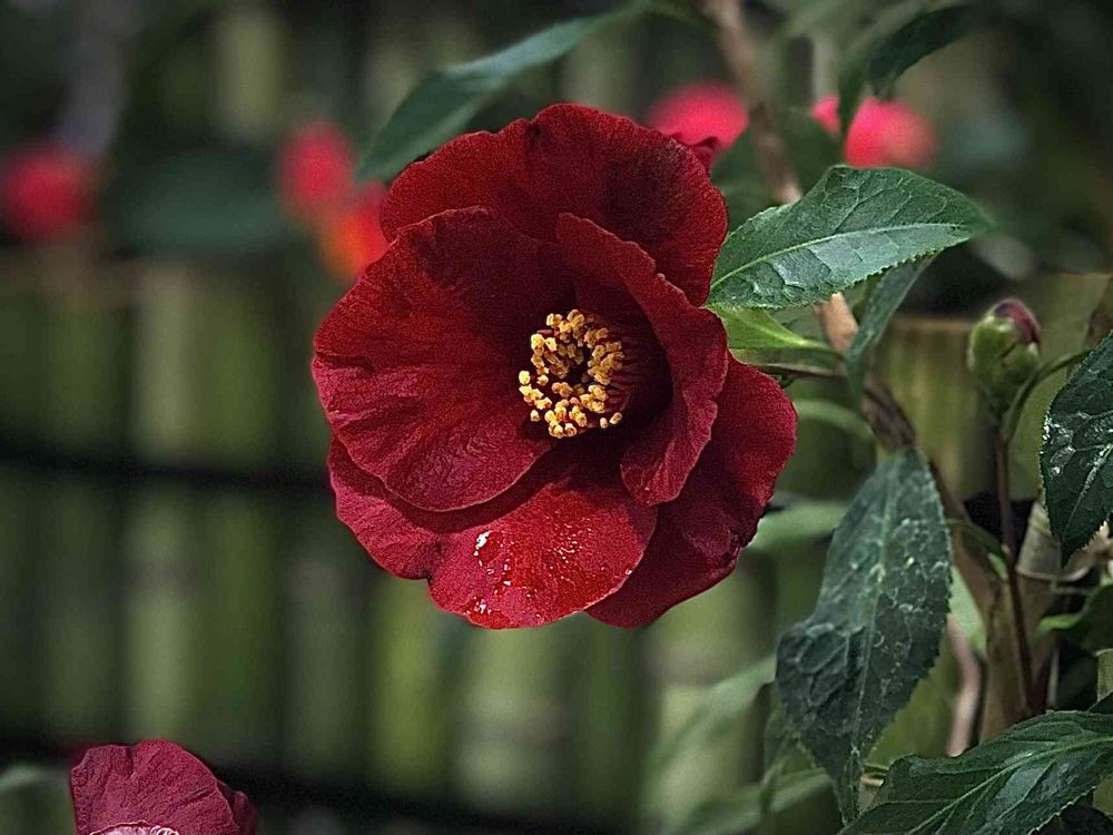 深い色合いが美しい、存在感たっぷりの椿でした😊