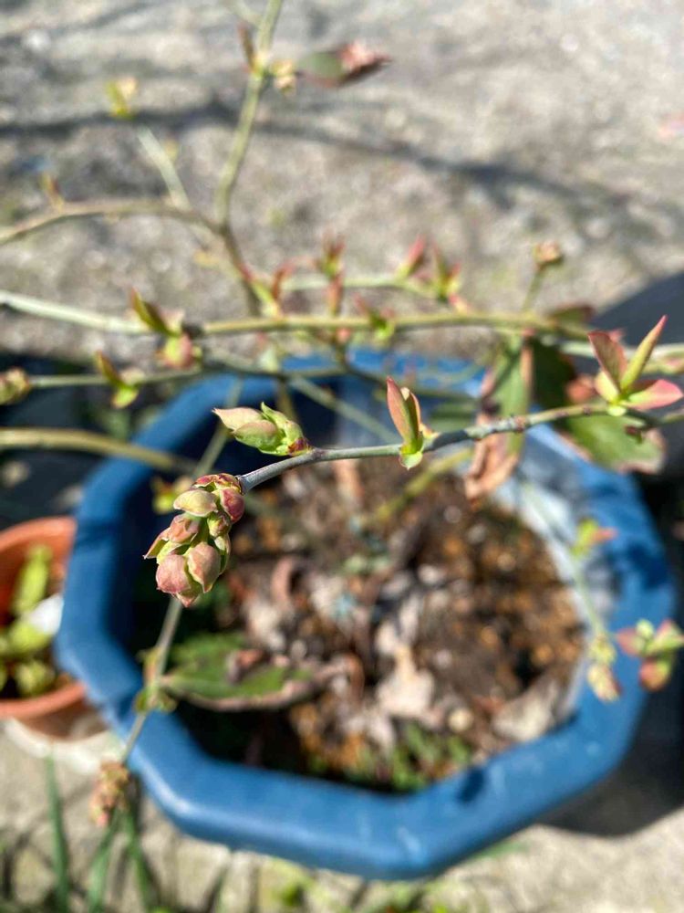 ブルーベリーの新芽が沢山出て来ました、やはりもう1本無いと実を付けないでしょうか?