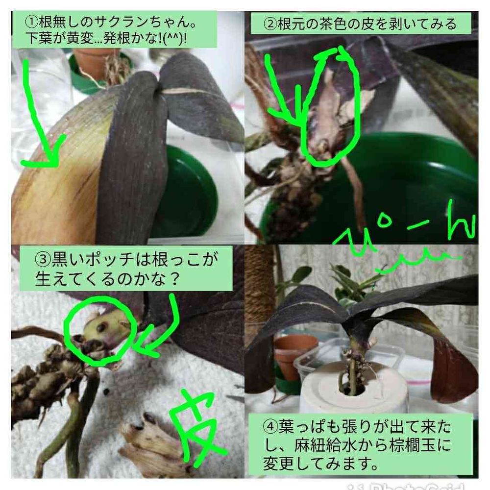 ウチにはサクランちゃんは二株あります。葉っぱが大きいのと、小さいのです。この子は2つあるサクランちゃんのうちの大きい葉っぱの子です。か細い根っこが2つあり、麻紐給水していました。