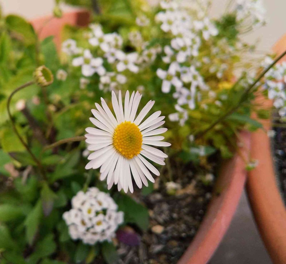 ハルジオンは、いつも空き地や畦道で視てたはずなのに、鉢の中で咲いてるのを見た時「なんてかわいい花だろう😍✨」って、初めましての気持ちでした。