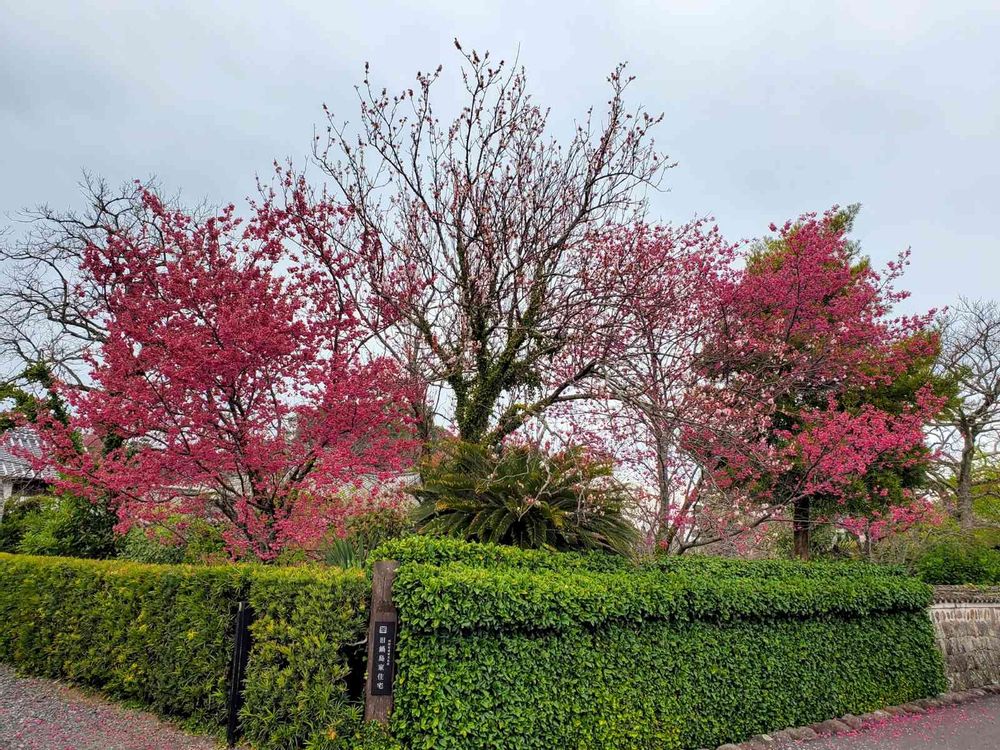 雲仙市にある旧鍋島邸の緋寒桜が、今年も見事に咲いていました🌸 赤い方が緋寒桜で薄いピンクが梅です🎵 あいにく曇り空で、写真の腕もなく😭実物の鮮やかさをお見せできないのが残念です。時がとまったかのような美しい街並みは、私のお気に入りの場所です😊💕