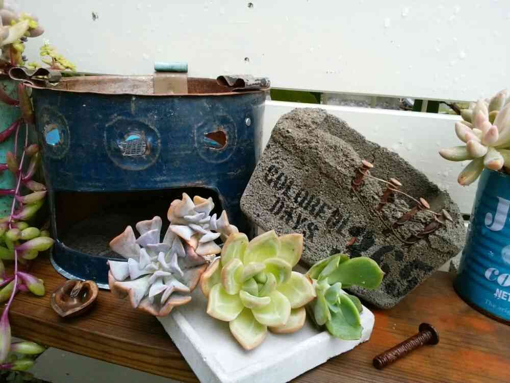 lierさんでキュービックフロスト(左)、おまけのルエラ(右)そして、ikuraさんのコンクリ鉢💞