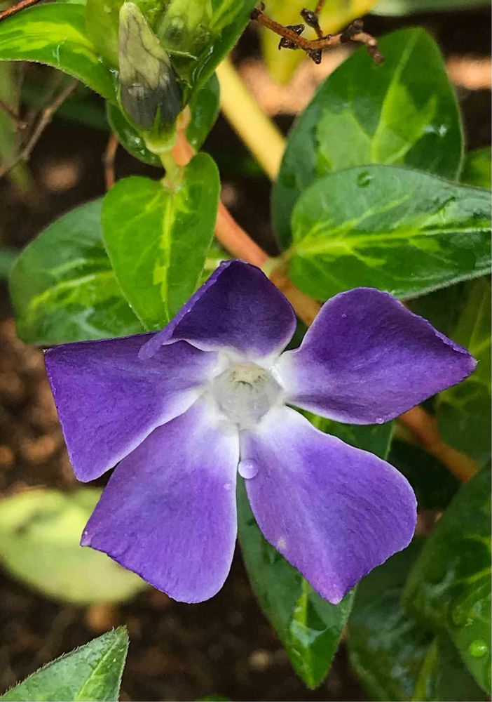 花壇のツルニチニチソウ🌿が、咲きはじめました。☺️蕾もたくさんなので、楽しみ。🪴🥰