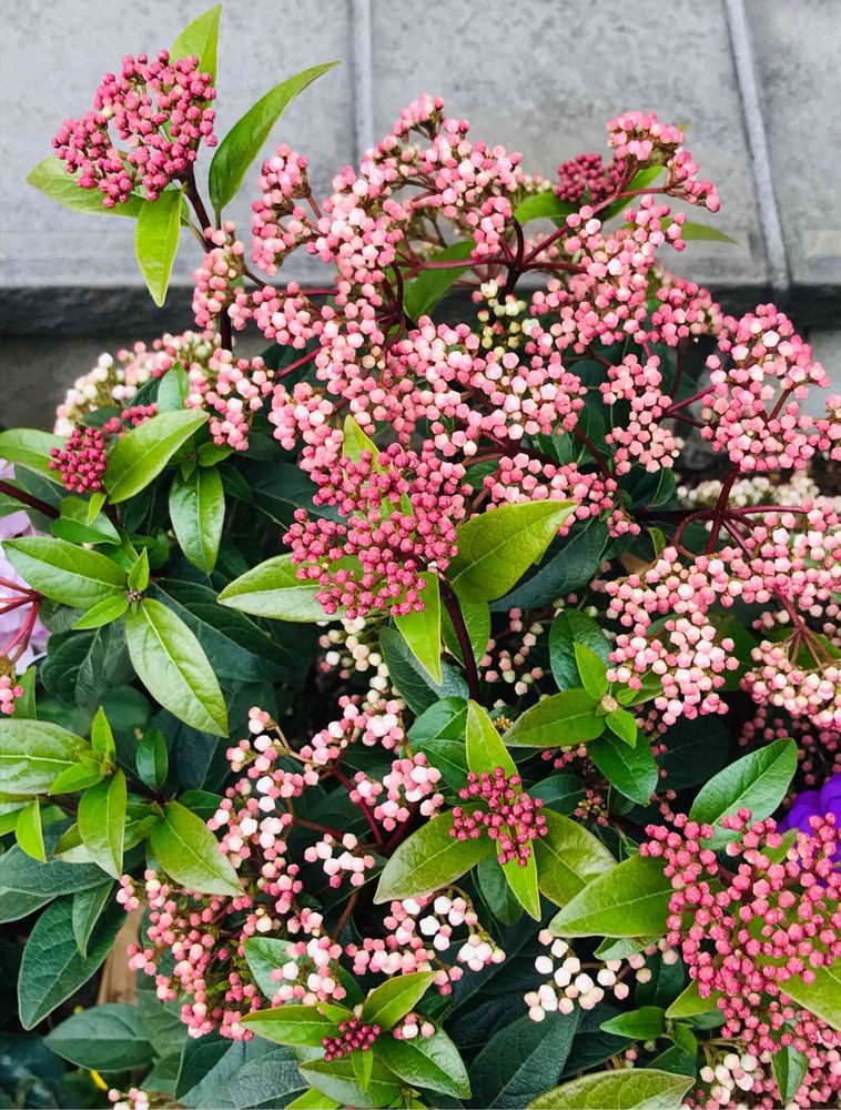 通り道のお店の前に、咲いていました。蕾がほのかな、ピンク色でかわいい。🌸☺️🥰🌿🪴