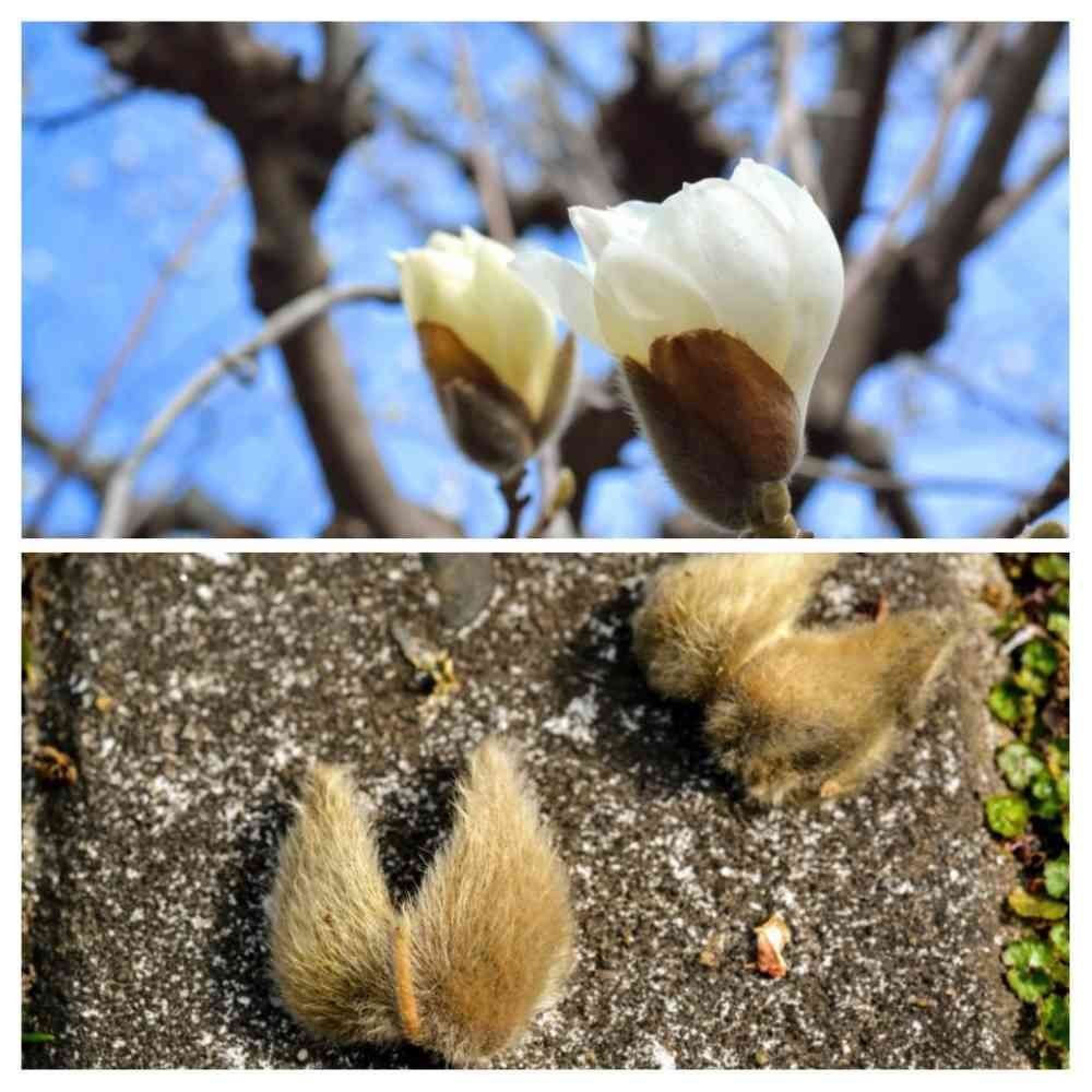 寒い中、咲くモクレンの花、毛皮のコートで守られていたんですね。自然は、凄いです🤗💞