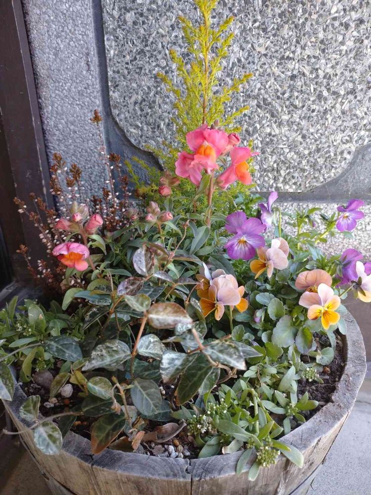 昨年植えた寄せ植えが春を迎え生き生きしてきました、