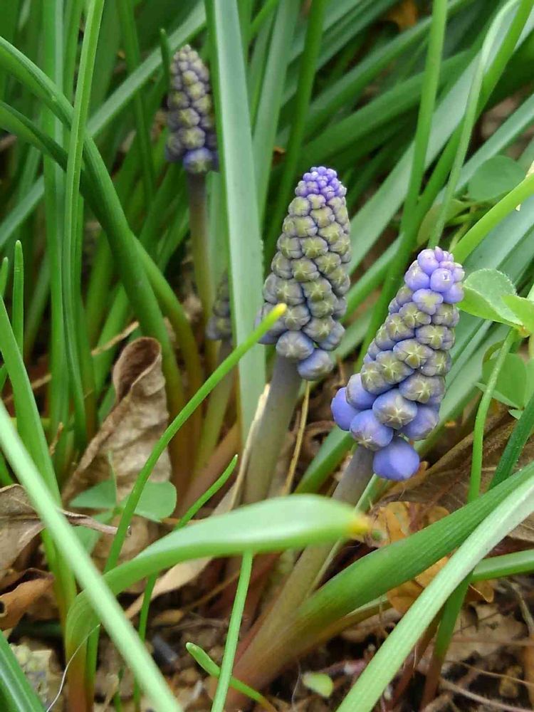 庭パト中見つけました❗😍地植えのムスカリちゃんが葉っぱに隠れていますが開花に向けて少しずつ大きくなっています💕💚💕💚
