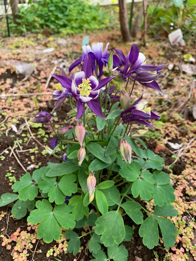 少し前に植えたオダマキがどんどん咲いていきます🎵
