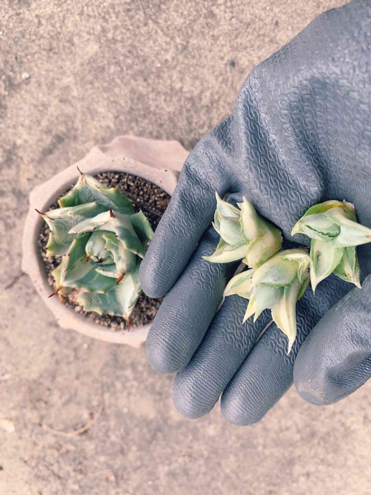 アガベを植え替えて、枯葉とり、根っこのお手入れして子株3つゲット!