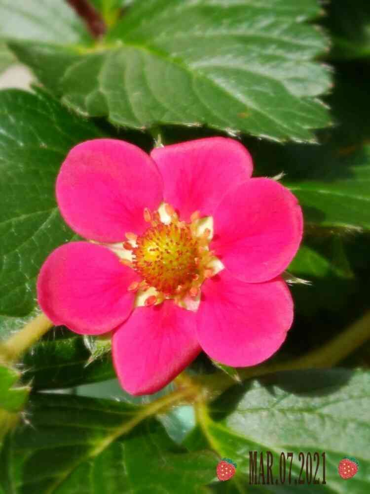白いお花じゃなく、濃いピンクのお花に惹かれてお迎えしたガーデンストロベリー🍓