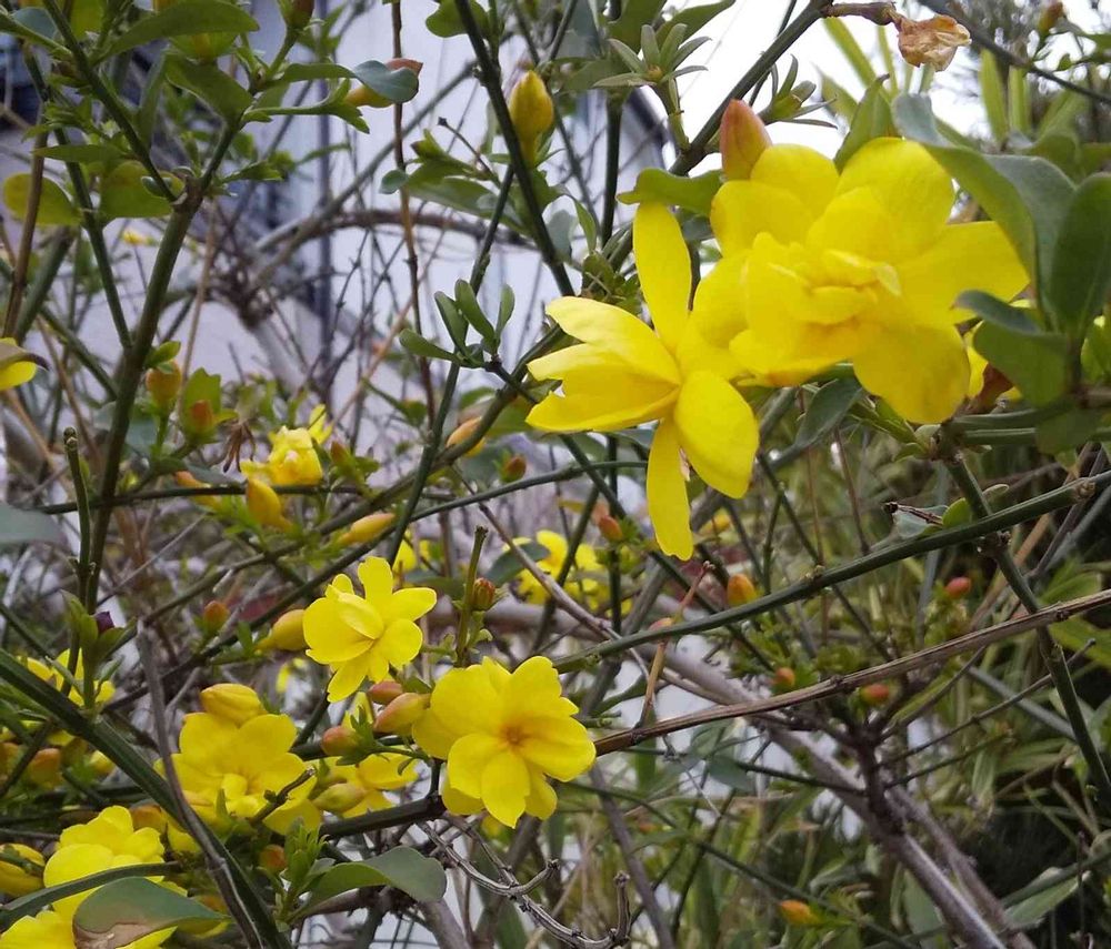 長く伸ばした枝と黄色い連翹の花に春の息吹きを感じます💛🎶🍀