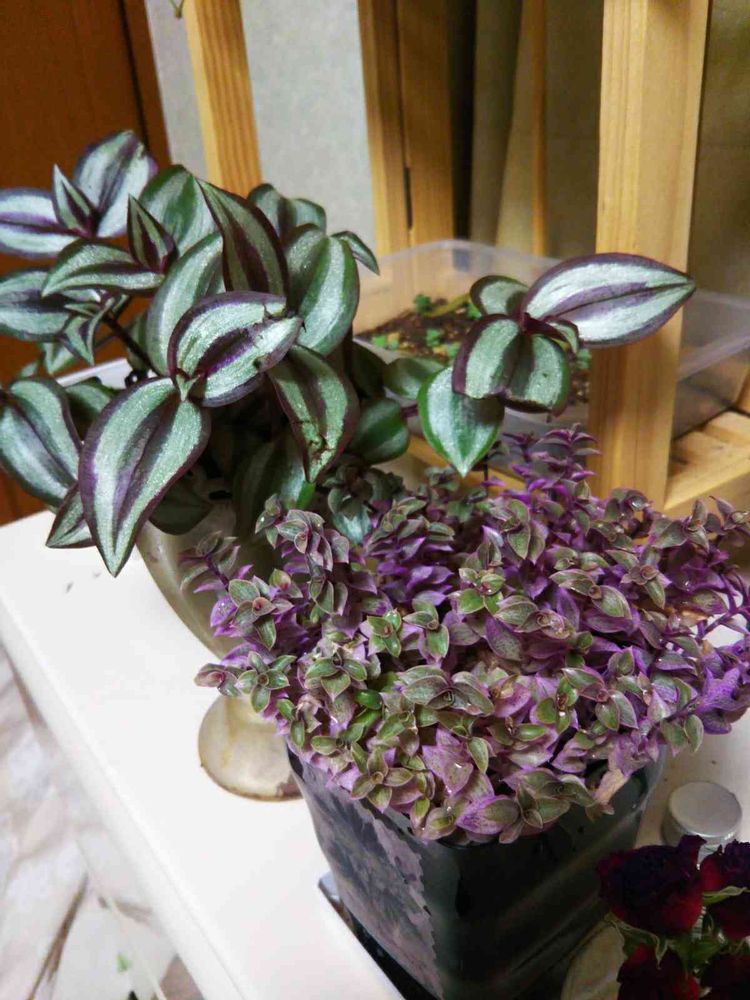 寝室で育てているカリシアロザートとトラディスカンティアゼブリナ。