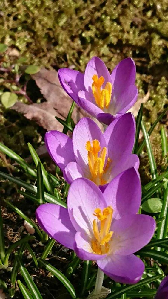 裏庭で咲いている三姉妹のクロッカスで⤴️😘