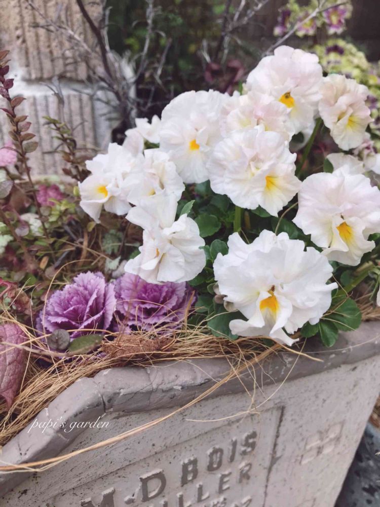 こちらのビオラは、淡いピンク紫が抜けて、真っ白になってしまいました…