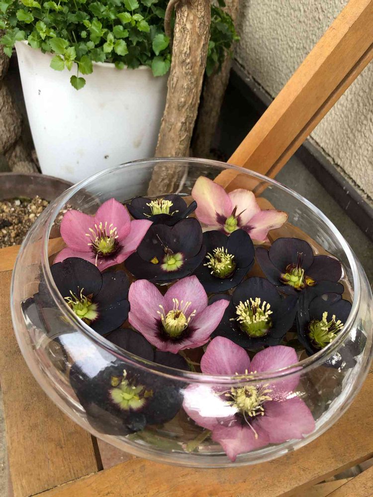 クリスマスローズも終わりに近づいたので水に浮かせて飾ってみました❣️(憧れてた〜)
