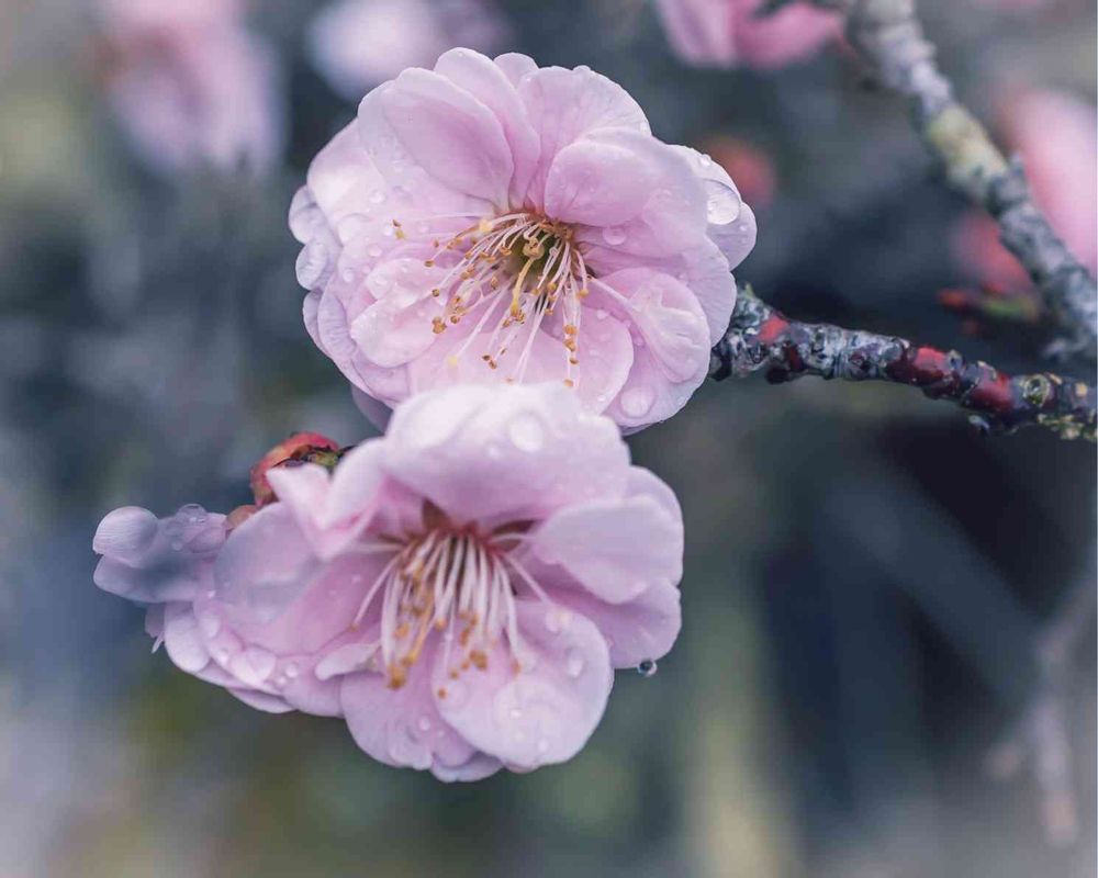 雨粒に濡れた桃色梅✿.*・✿.*・