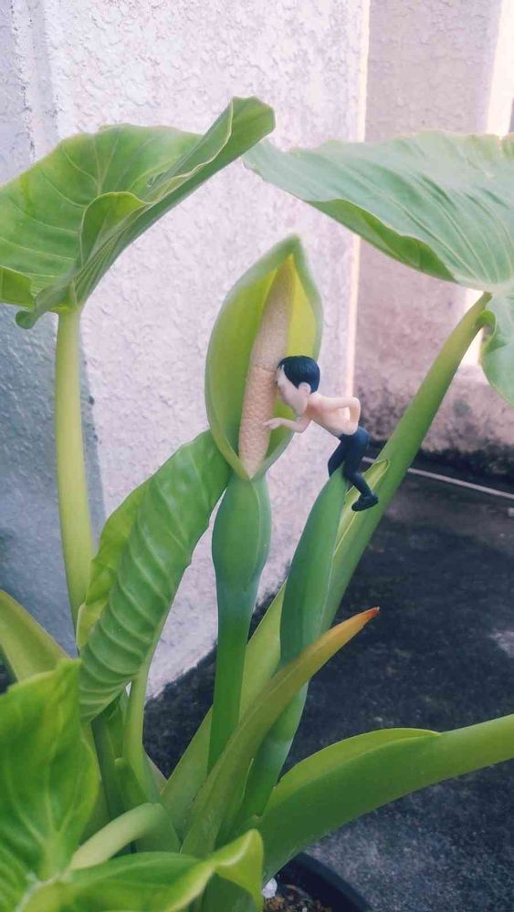 そうですよね、変わった形のお花ですね(๑'ᴗ'๑)私もクワズイモを育てた事無かったので初体験です💓
