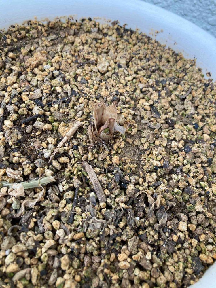 掘り起こしてみたら、芽のすぐ下が黒っぽくて柔らかくなってる状態です。