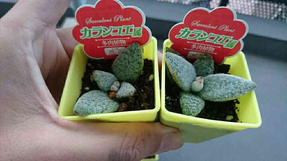 これも入荷したてのダイソーで、ふさふさ感の少ない毛の『カランコエ』。土がべちゃべちゃやったのでさっそく植え替えました。