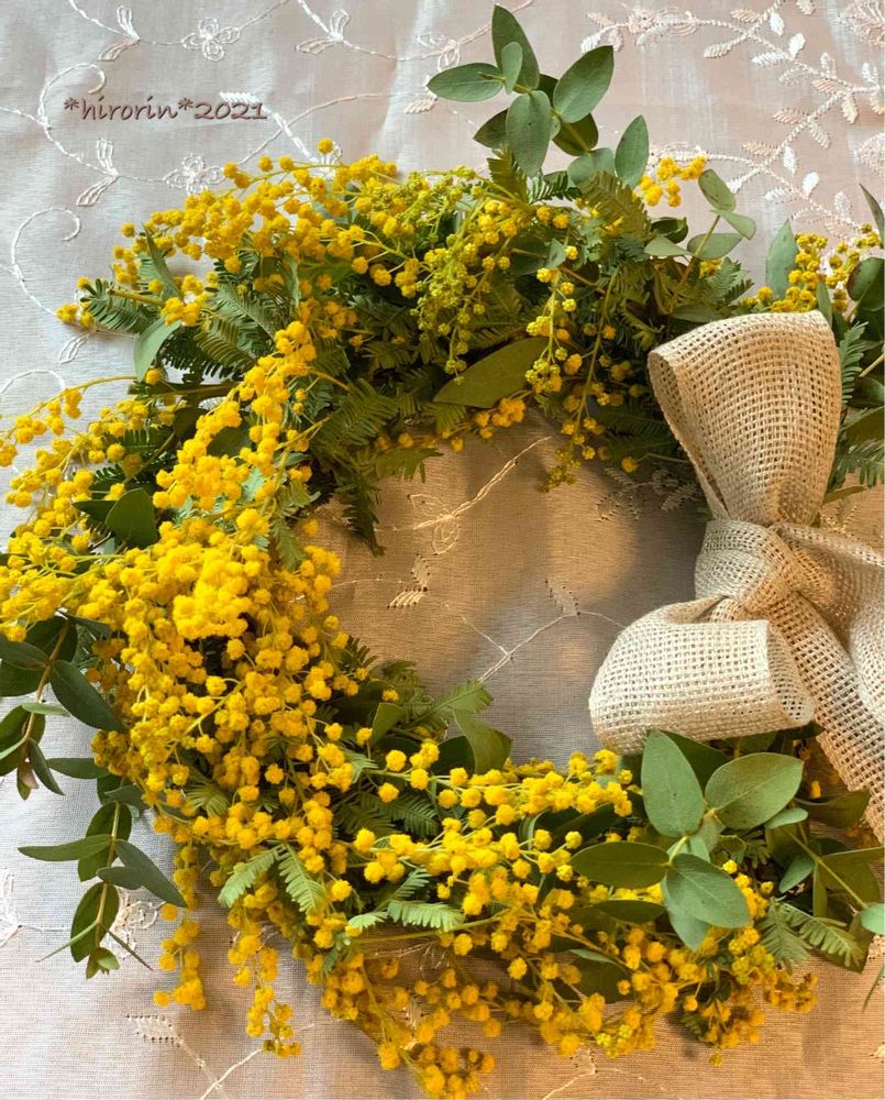 ミモザの日、第二段は🌼ミモザでリースを作ってみました。