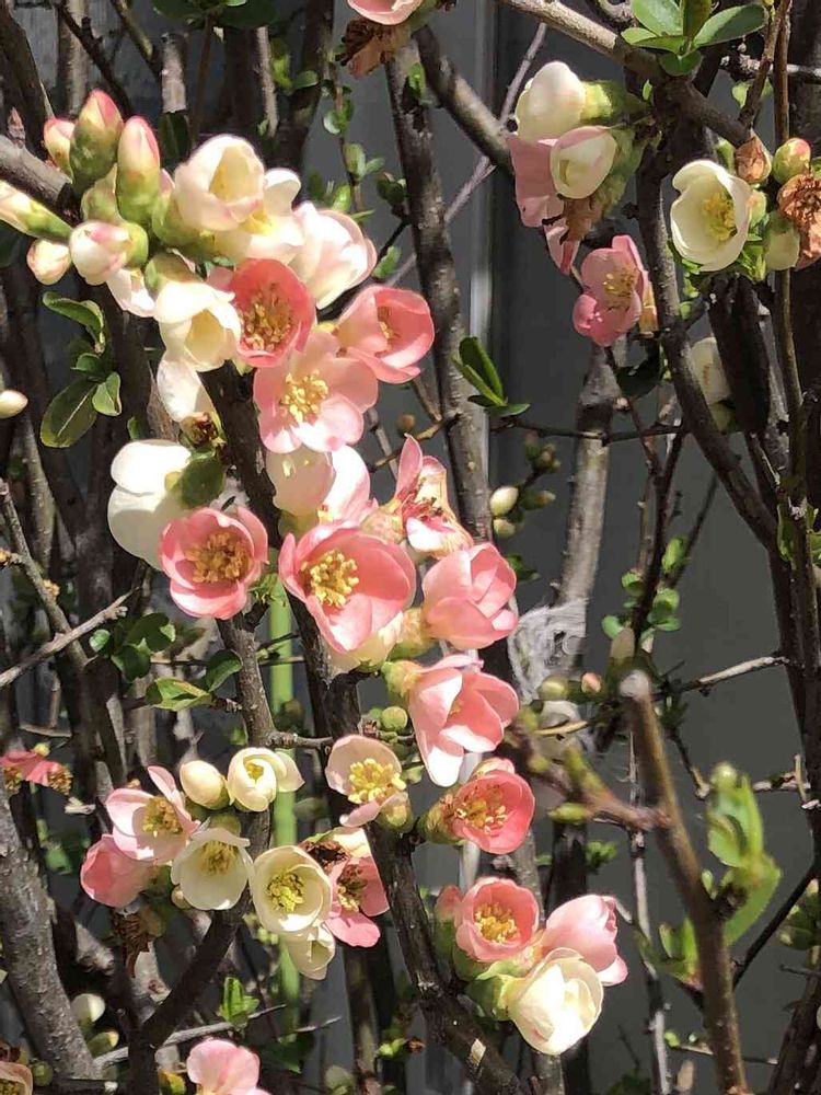 わが家のボケは赤だけどピンクと白は初めて😍優しい色合いで可愛いですね🌸♡˖꒰ᵕ༚ᵕ⑅꒱🌸💗