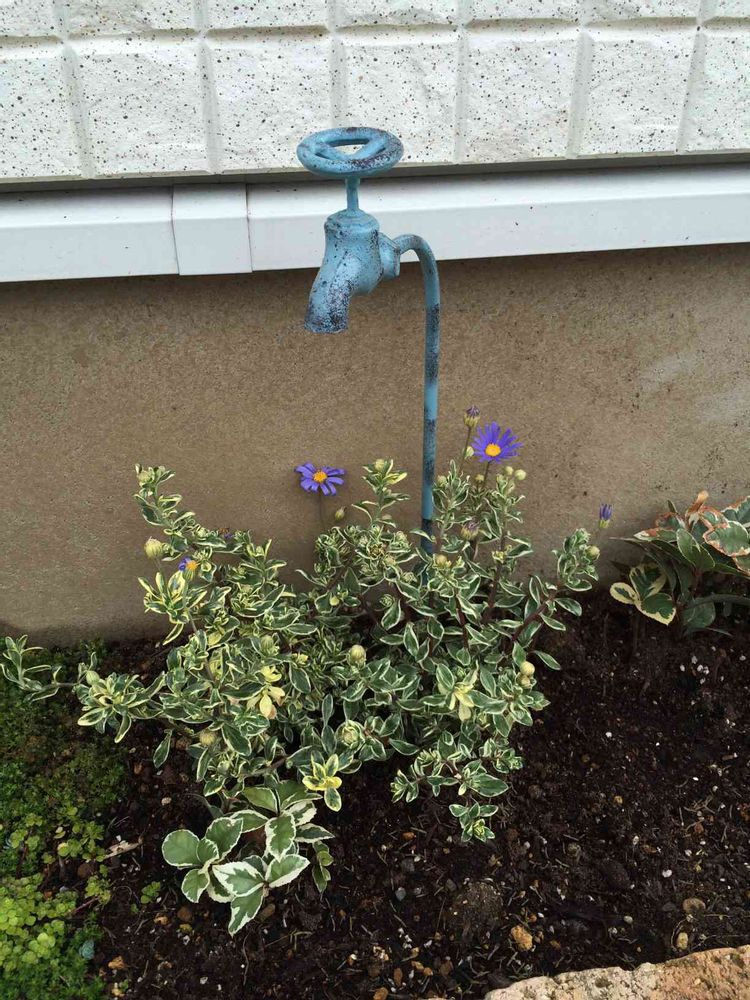 花壇に蛇口風の飾りをつけました( ^ω^ )