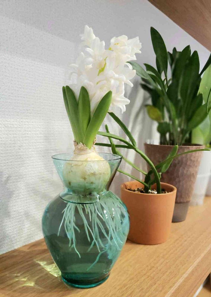 次は白いヒヤシンスを室内で水耕栽培しています😄