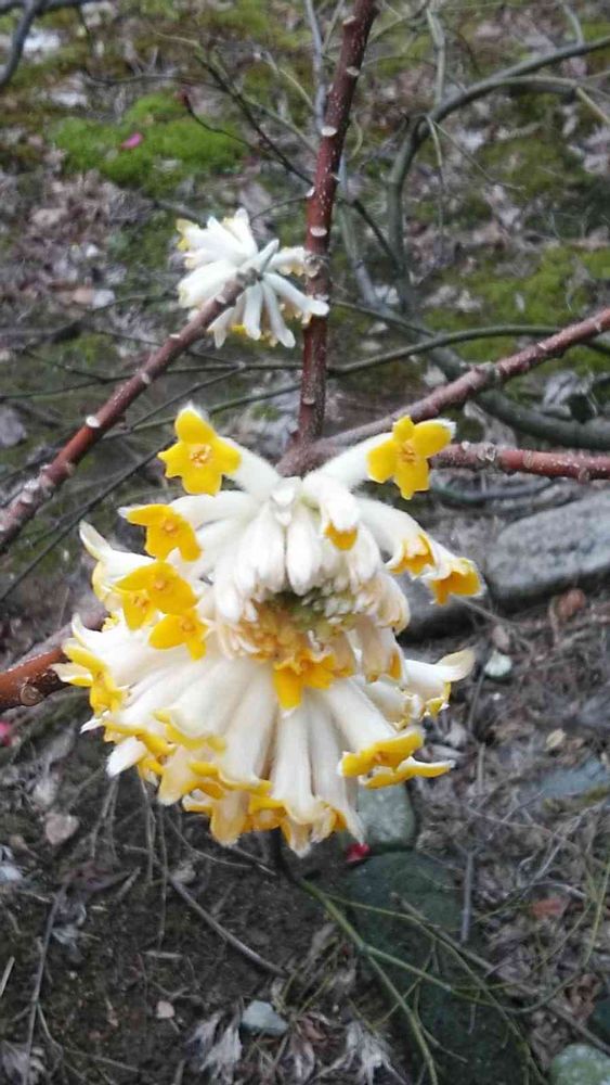 私は最初、ミツマタ➖と言うお花を知らないので『誰がミカン🍊を枝に刺したのかなぁ❓』なんて