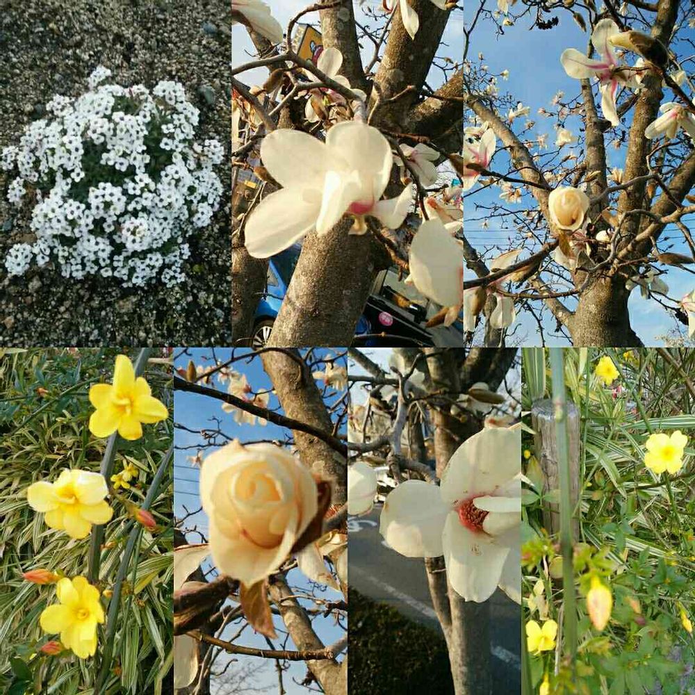 2月末見かけた花達、コブシのや木蓮(ここには無い)、レンギョウ(ケナリ)、開く前のコブシもバラ風に見えるな