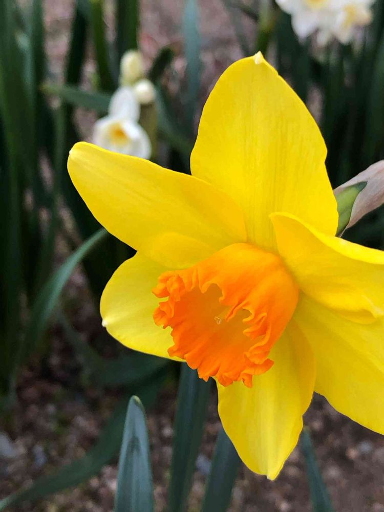 この水仙は、ビビッドカラーで、庭で一際目立っています🧡💛😁✌️