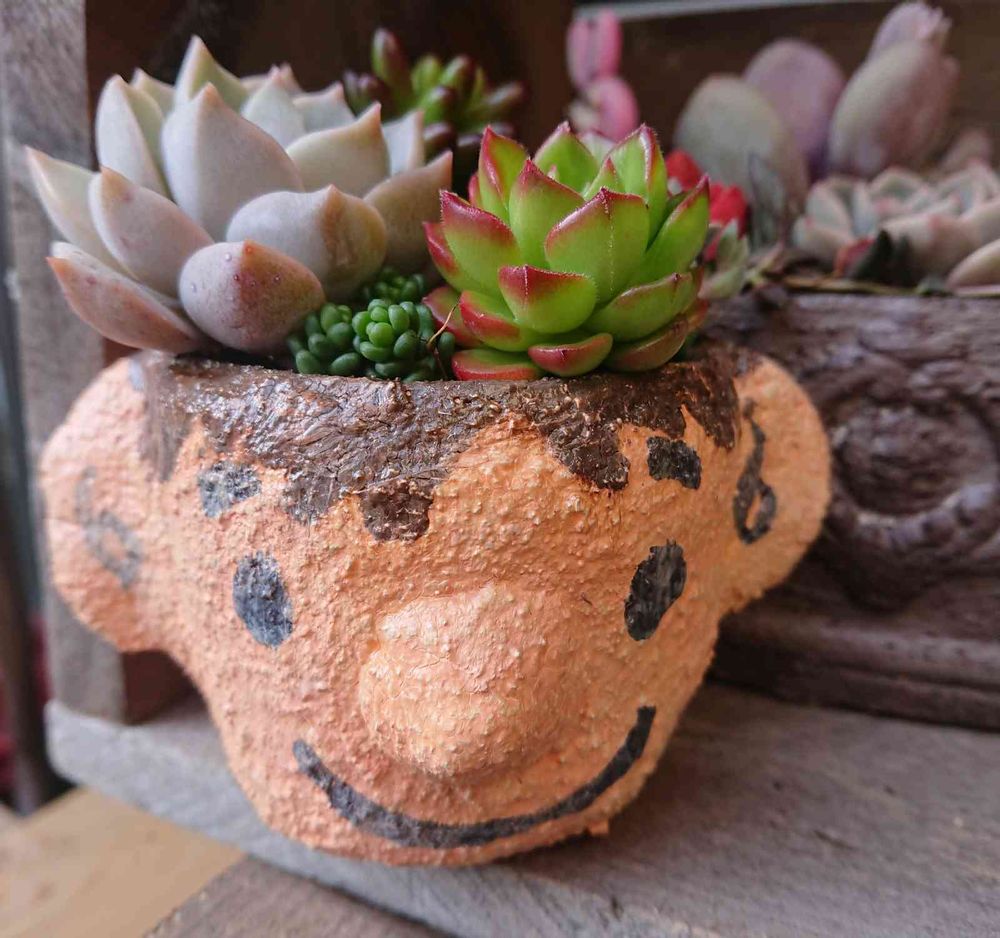 モルタルこねこねして顔型鉢作ってみました~😊