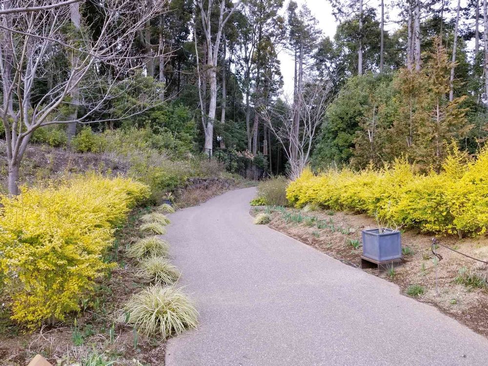左右の花壇には未だ球根が眠り、花植えもこれから。