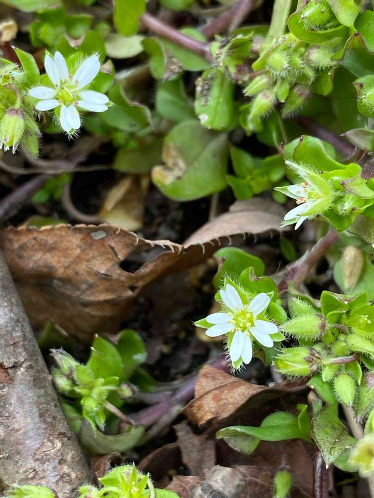 調べてみましたが、ノミノフスマは茎や萼が無毛のようです。これはふさふさしているので、残念ながら違うようでした😥