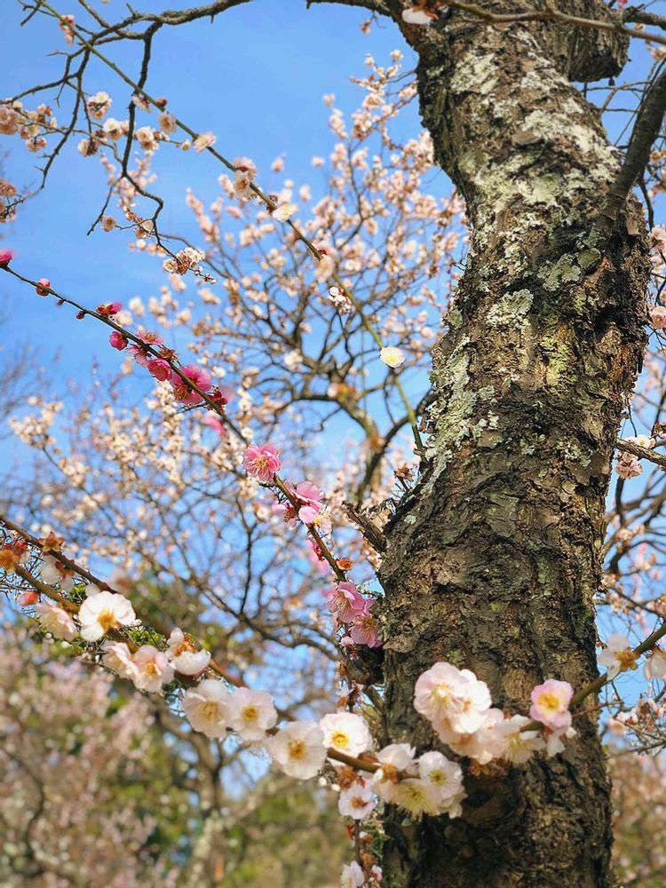ウメのお話が青空に映えて、なんとステキなアングルなのでしょう✨💞