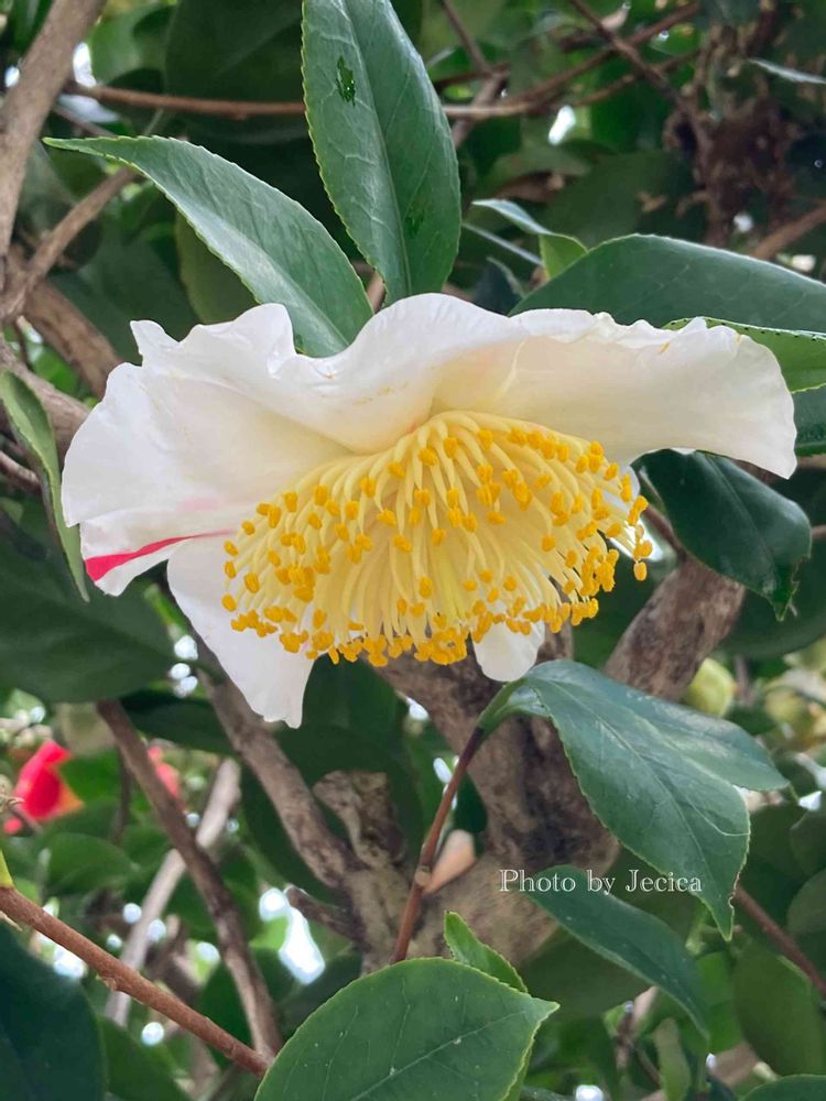 「尾張五色椿」という江戸時代に名古屋城🏯の中で育てられていた椿が、赤、白、斑入り、覆輪、いろいろな咲き方をしますよ💕
