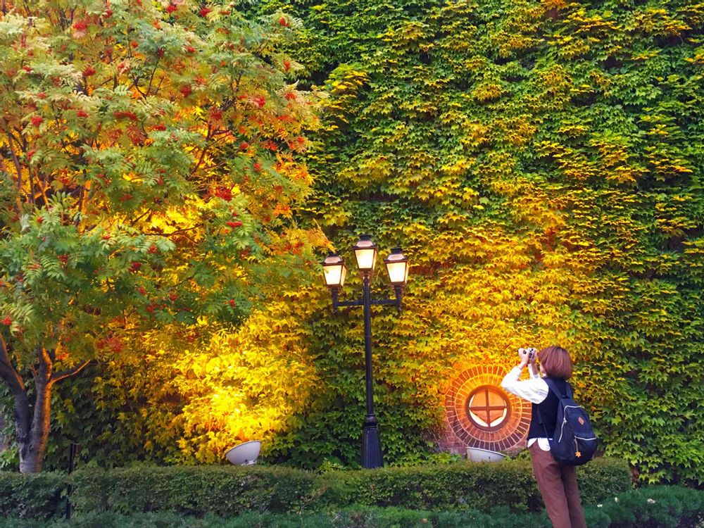 壁一面のツタとライトアップのゴールド、ナナカマドの赤い実、圧倒的な美しさですね🌟💓