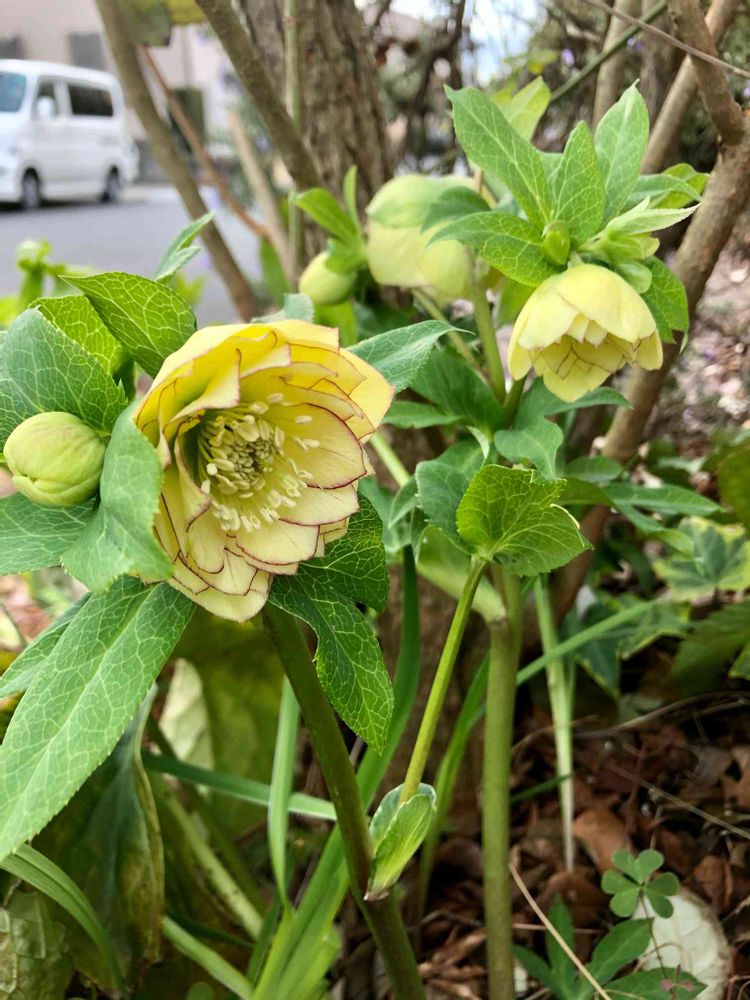 ウィンターシンフォニー イエローダブルピコティの生えている場所は家の前の道沿いです。