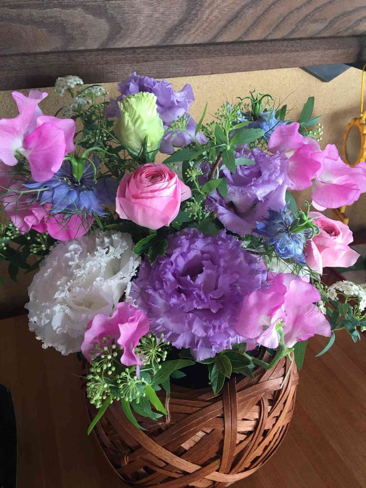 薔薇、スイートピー、トルコキキョウ、アゲラ