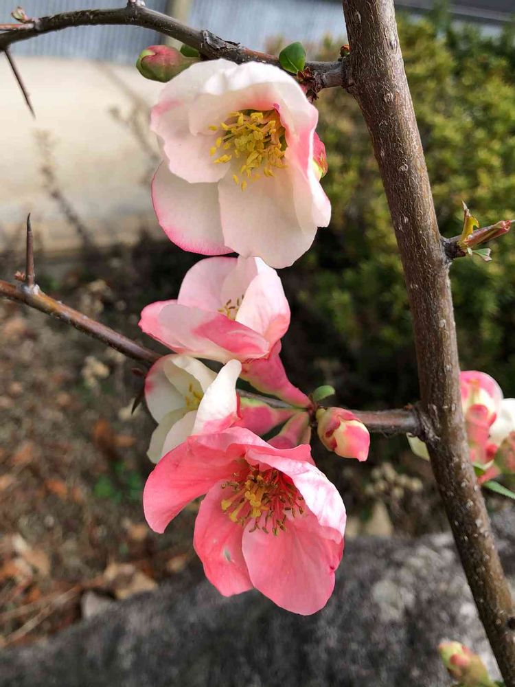 主人の実家の庭で咲いている木瓜の花❁⃘*.゚