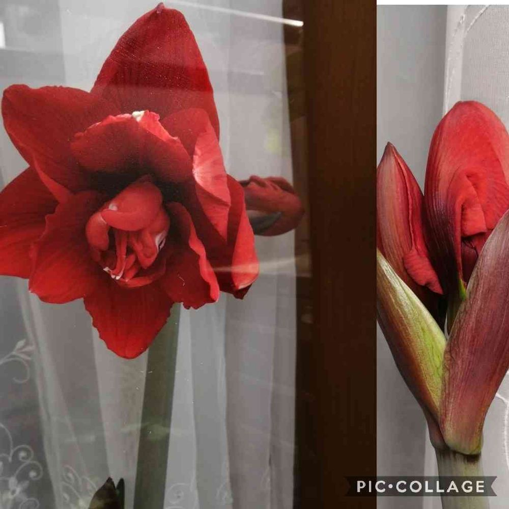 アマリリス、やっと咲きました。真っ赤です。💯💯💯❤️