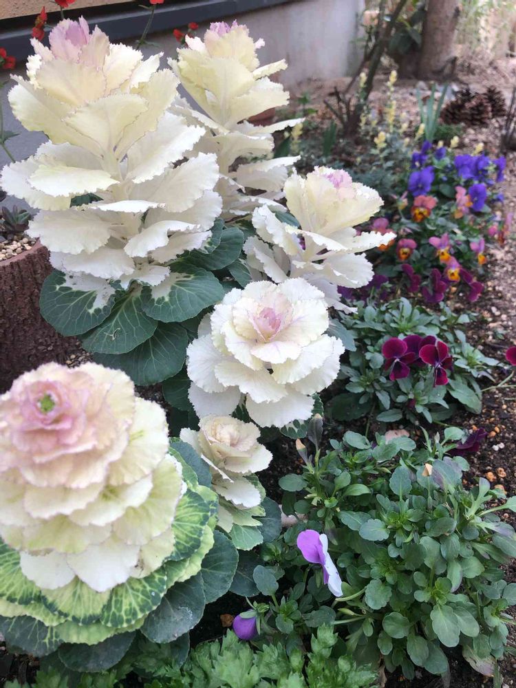 日当たりのいい場所に鉢植えの葉牡丹もありますが、そちらの方が蕾も大きくて開花が早そうです(*´-`)
