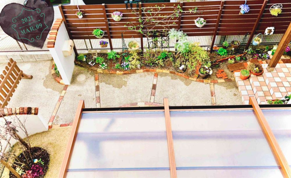 ベランダから小さなお庭のぞいてみた♡芽吹きで、少しずつ春めいてきました♡ワクワク