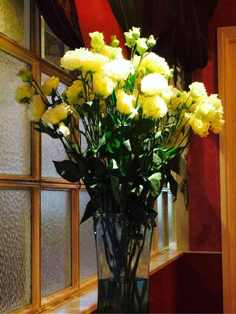 バースデーディナーで訪れたホテルのレストランに飾ってあった白いトルコキキョウがとても綺麗でした。