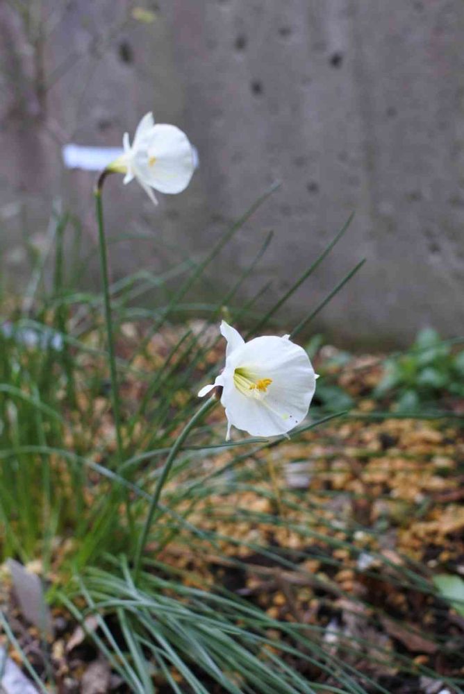 原種スイセンの白い薄い花弁が冷たい空気に似合います。