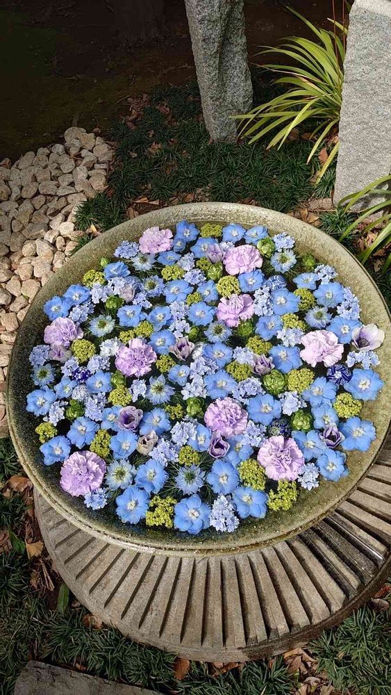 私のアイコン、デルフィが入ってるこちらの花手水は🥇✨です…が、2つ目のも魅力あって💓キュン‼︎です。色合いがステキでタイプよ~😘