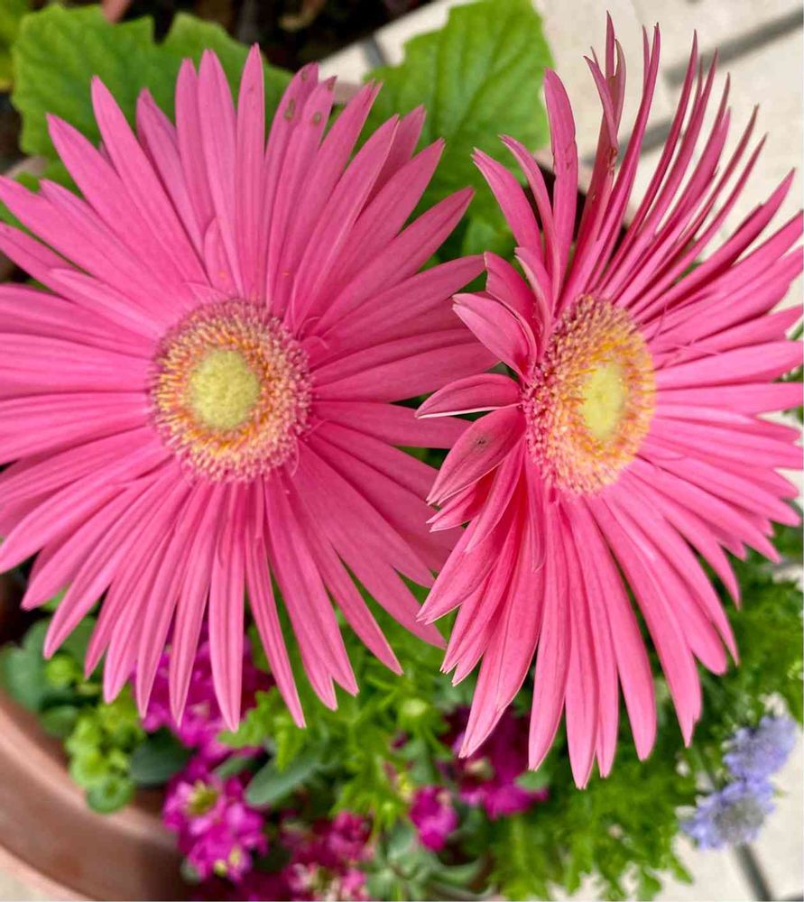 元気よく咲いているピンクのガーベラにヒトメボレです😍